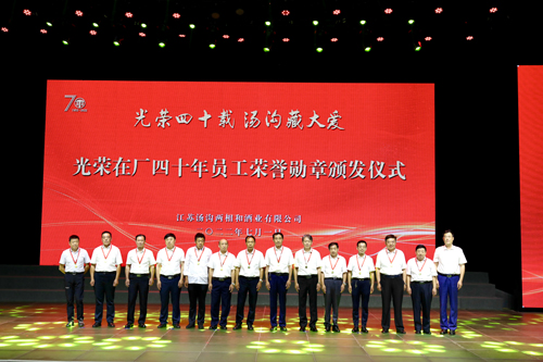 光榮在廠40年榮譽(yù)勛章獲得者孫一清在會上表示,我們經(jīng)歷過湯溝酒業(yè)由小到大的發(fā)展歷程,也見證了企業(yè)從櫛風(fēng)沐雨到走向輝煌的艱苦蛻變。40年榮譽(yù)勛章,我們感到十分榮光,相信湯溝酒業(yè)這艘巨輪,必將屹立于時(shí)代潮流,向著“新十年,新百億”的目標(biāo)披荊斬棘,破浪前行!