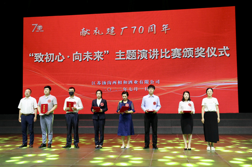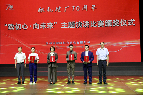 啟動儀式上,湯溝酒業(yè)青年員工激情高昂,青春活力,上演了精彩的文藝演出。董事長朱耀匯為光榮在廠40年老員工頒發(fā)了榮譽(yù)勛章,感謝老員工們在崗位上默默耕耘,成績卓越,把熱血青春無私奉獻(xiàn)給企業(yè),他們心中的大愛與執(zhí)著,傳承堅(jiān)守、不忘初心的力量,是企業(yè)發(fā)展的力量源泉和寶貴財(cái)富。新員工代表向光榮在廠40年老員工們敬獻(xiàn)鮮花,向老員工們致敬,這是一種傳承,一種期待,一種精神的傳遞,是守心守藝的完美詮釋,更是卓越擔(dān)當(dāng)?shù)男撵`交融。老員工代表張加林、孫一清現(xiàn)場發(fā)言。青年骨干在“致初心·向未來”演講比賽決賽中,展現(xiàn)了湯溝酒業(yè)青年風(fēng)采與青春活力,以不同的視角表達(dá)出對企業(yè)的熱愛,對未來的無限憧憬,對事業(yè)的不懈追求與努力,以及融入企業(yè)發(fā)展的堅(jiān)強(qiáng)決心,引起了強(qiáng)烈的思想共鳴。本次決賽邀請了專家評委管三松、楊泗亮、王倩倩、韓晗、王林、陸葉現(xiàn)場打分,評出一等獎(jiǎng)2名、二等獎(jiǎng)4名、三等獎(jiǎng)6名及優(yōu)秀獎(jiǎng)8名,并現(xiàn)場頒發(fā)證書及獎(jiǎng)品。灌南縣文聯(lián)副主席楊泗亮對本次決賽進(jìn)行了精彩點(diǎn)評。