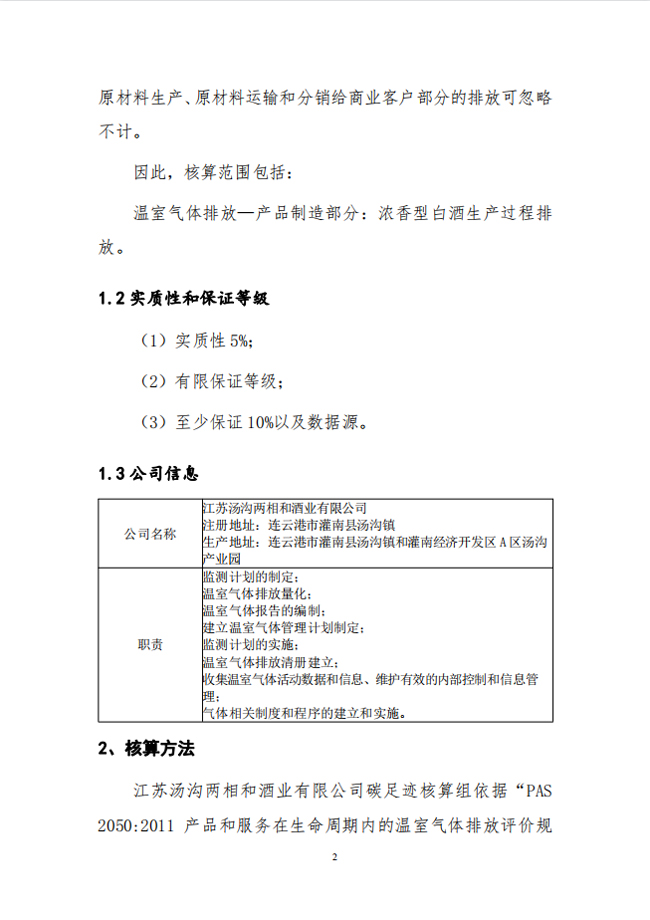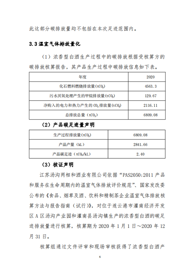 江蘇湯溝兩相和酒業(yè)2020年度碳足跡核算報(bào)告