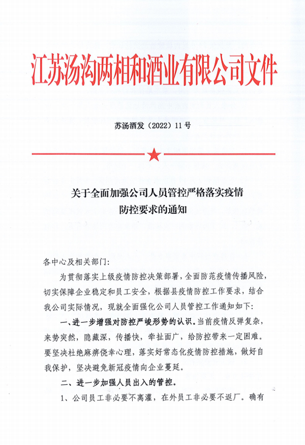 關(guān)于全面加強公司人員管控嚴格落實疫情防控要求的通知
