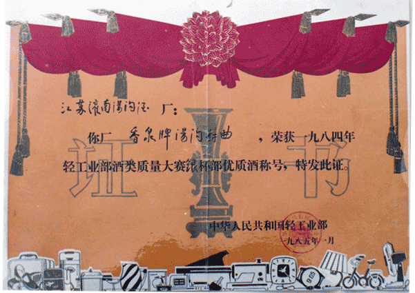 湯溝酒業(yè)榮獲—1984年輕工部酒類大賽 獲得金杯獎(jiǎng)