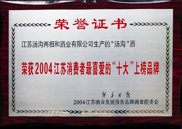 湯溝酒業(yè)榮獲江蘇消費者喜愛的“十大”上榜品牌