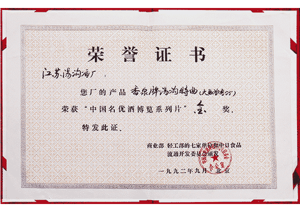 湯溝酒業(yè)榮獲—中國(guó)名優(yōu)酒博覽系列片金獎(jiǎng)